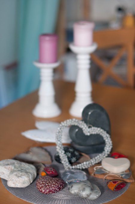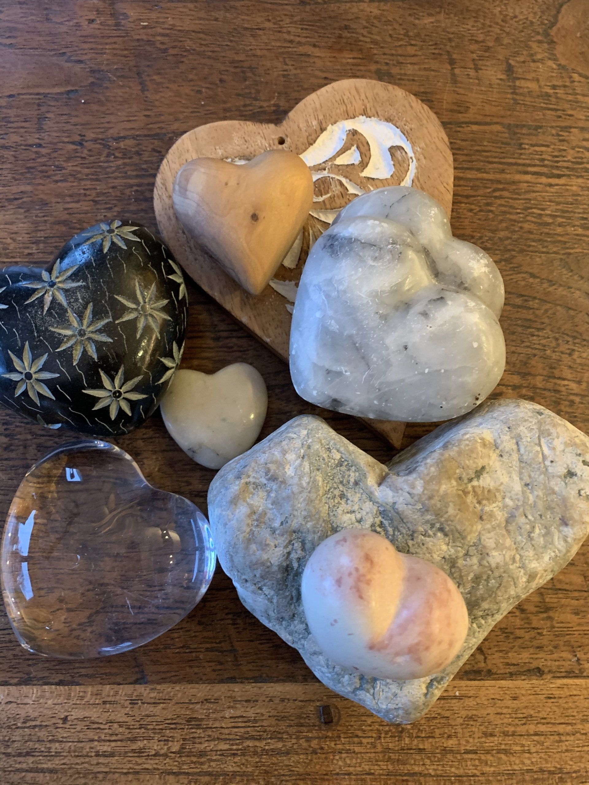 Ich bin eine „Herzen-Sammlerin“. Wenn ich am Strand spazieren gehe, halte ich Ausschau nach Steinen in Herzform. Mittlerweile habe ich eine schöne Auswahl an gesammelten, gekauften und geschenkten Herzen. Sie dekorieren mein Zuhause und meine Praxis.