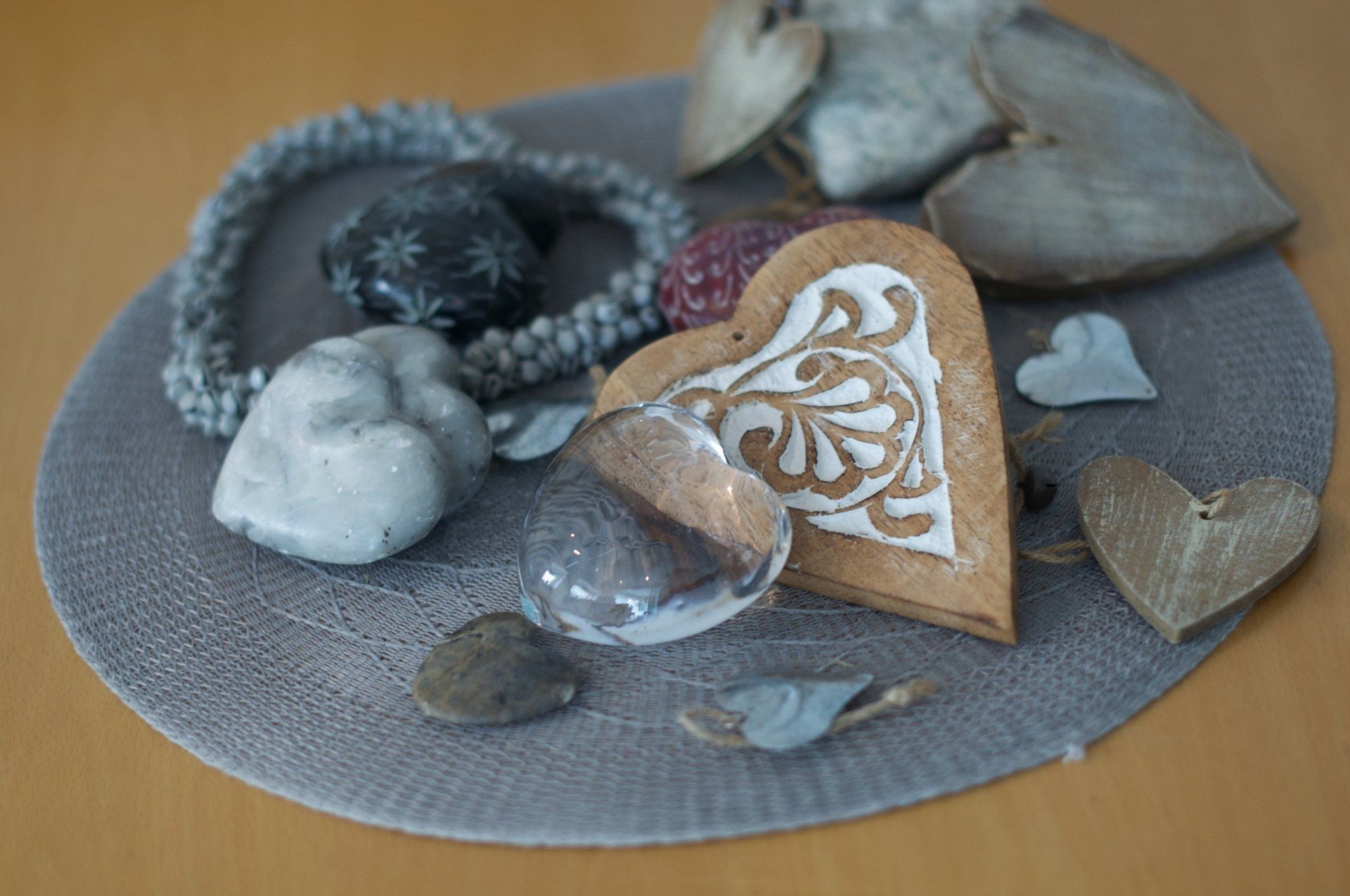 "Das Herz hat seine Gründe, die der Verstand nicht kennt; man fühlt es auf tausenderlei Weise." (Blaise Pascal) Ich bin eine „Herzen-Sammlerin“. Wenn ich am Strand spazieren gehe, halte ich Ausschau nach Steinen in Herzform. Mittlerweile habe ich eine schöne Auswahl an gesammelten, gekauften und geschenkten Herzen. Sie dekorieren mein Zuhause und meine Praxis. Eine junge Frau, die mich in meiner Praxis besuchte, nimmt eins dieser Herzen in die Hand. Es ist aus schroffem Stein, groß und sehr schwer. Sie sagt: „Mein Herz ist so wie dieser Stein. So schwer und hart wie dieses Steinherz, damit ich all das tragen und ertragen kann, was ich erlebt habe.“ Sie hat ein Bild dafür gefunden, wie es in ihr aussieht. Auch in meinen Trauerzeiten hat das Herz sehr oft so ausgesehen. Schwer und erschöpft, voller Sehnsucht nach dem Menschen, den ich verabschieden musste. Voller Sehnsucht auch nach Ruhe und Frieden in mir. Einen Moment Innehalten. Ohne Wertung wahrnehmen, was da ist und achtsam auf das Herz hören. Da ist viel Schmerz. Es ist traurig, einsam, verloren, sorgenvoll, verletzt. Vielleicht aber auch wütend oder voller Scham und Schuldgefühle. Diese Gefühle wertfrei da sein lassen. Sie nicht verleugnen, weil das noch viel mehr Lebenskraft raubt. Sie annehmen, auch wenn es schwerfällt. Ihnen einen Ausdruck geben, einen Rahmen, einen Raum. Das hilft, um nicht von ihnen überwältigt zu werden und die Gefühle einzuordnen. Achtsam und respektvoll mit mir umgehen. Mit mir selbst wieder im Kontakt sein, mich selber wertschätzen. Fürsorglich mit mir umgehen. Wieder neu lernen, den Körper zu spüren. Ihn mit Nahrung versorgen. Wieder essen und trinken. Bewusst atmen, bis tief in den Bauch hinein und den Körper mit Sauerstoff und neue Energie versorgen. In der Trauer ist jede Faser meines Körpers mit „Überleben“ beschäftigt. Ein Tag nach dem anderen. Es ist ermüdend. Die Ereignisse haben sich überschlagen, vieles musste erledigt werden. Jetzt bewusst eine Pause einlegen, einmal wieder langsame Schritte gehen und mich ausruhen, zur Ruhe kommen, in mich hineinhören. Was beinahe unmöglich erscheint, aber meine Seele sehnt sich danach. Was kann ich im Hier und Jetzt spüren? Welcher Gedanke kommt mir gerade in den Sinn? Alles darf sein, egal was mein Umfeld erwartet oder sich wünscht. Jetzt geht es um mein Herz und alles was darin ist. Die junge Frau und ich unterhalten uns über verschiedene Herzenszustände. Was in ihrem Herz ist, was die Schwere bedeutet. Was sie braucht und sich wünscht. Schließlich nimmt sie ein anderes Herz in die Hand. Es ist aus Glas. Sie sagt mit einem Lächeln: „Das ist mein Lieblingsherz. Ich wünsche mir wieder so leicht und durchlässig zu werden wie dieses Herz.“