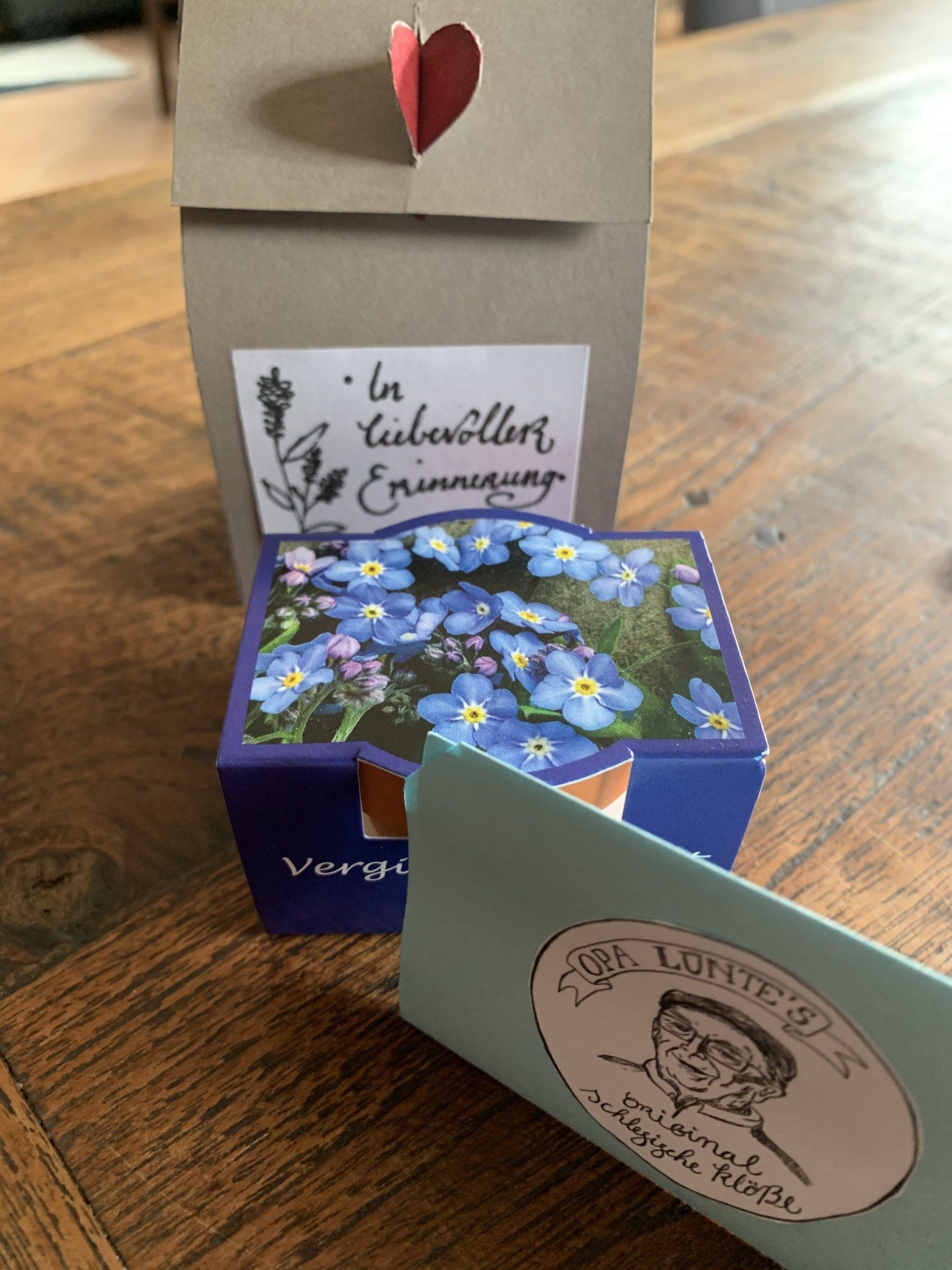 Im letzten November ist mein Vater gestorben. Nachdem ich viel in unterschiedlichen Netzwerken über Abschiednehmen in Covid-Zeiten gelesen hatte, musste ich nun selbst Abschied nehmen im kleinen Kreis mit Abstand, ohne Nachfeier. Da, wo wir an Grenzen stoßen, wird Kreativität gefordert! Und so war es kostbar zu sehen, wie jeder Einzelner dazu beigetragen hat, diesen Tag besonders zu machen. Meinem Vater einen würdevollen Abschied zu geben, auch wenn wir nicht auf vertraute Rituale zurückgreifen konnten. So entstand eine Homepage, wo Freunde und Familienangehörige Fotos, Erinnerungen und Geschichten teilen konnten. Eine besondere, selbst gestaltete Traueranzeige. Eine Liveübertragung aus der Kapelle. Ein persönliches, aufgenommenes Lied. Ein gemaltes Bild von der Urenkelin. Eine Diashow, die geteilt wurde. Der Tag vor der Beerdigung war gefüllt mit Basteln. Es wurden kleine, liebevolle Geschenkverpackungen hergestellt, für ein Blumentöpfchen mit „Vergissmeinnicht“, eine kleine Tafel Schokolade und das Lieblingsrezept meines Vaters, „Schlesische Klöße“. Dieses gemeinsame Basteln war schon ein Teil der Trauerarbeit. Wir waren mit unseren Händen beschäftigt und haben uns erinnert, geweint und gelacht. Das „Aussähen“ in die kleinen Blumentöpfchen und das Nachschauen, wie die Pflanzen wachsen, wurde nach der Beerdigung für die Kinder, aber auch für die Erwachsenen noch einmal ein besonderer Moment - „Vergissmeinnicht“! Statt einer Nachfeier haben wir alle in unseren Familien versucht das Lieblingsgericht nach zu kochen, mit unterschiedlichem Erfolg. Und in mir konnte ich das Lachen von meinem Vater über unsere Ergebnisse hören. Ich habe mich mit ihm und mit allen verbunden gefühlt. Und das war sehr tröstlich. Natürlich wäre es gut gewesen, wenn mehr Familienangehörige und Freunde zur Beerdigung hätten kommen dürfen. Die „erlaubten“ Plätze in der Kapelle haben noch nicht einmal für den engsten Familienkreis gereicht. Vielen Menschen ist das Abschiednehmen, der letzte Weg vorenthalten geblieben. Und das ist traurig. Bekannte, gewohnte Rituale geben Halt, gerade in einer Zeit, in der man sich verloren fühlt. Wir als Familie haben einen Weg gefunden, der gut für uns war und auf dem wir uns miteinander verbunden und getröstet gefühlt haben. Es war eine Chance, in sich hinein zu hören und Neues zu wagen. Ich werde aber auch dankbar sein, wenn Umarmungen und Gemeinschaft wieder möglich sind.