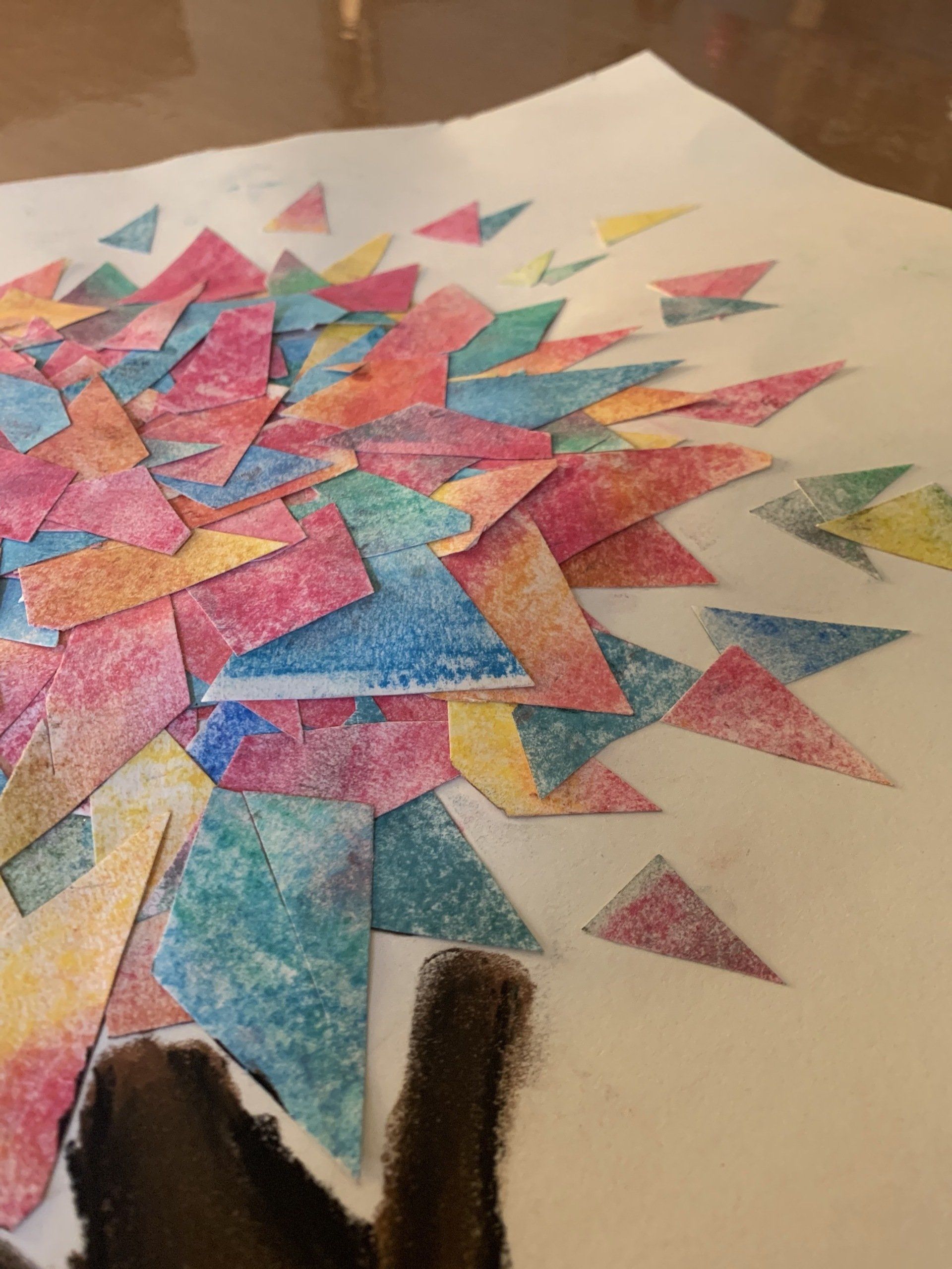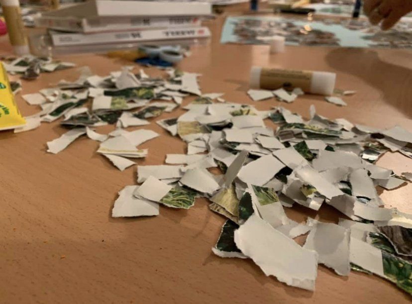 Die junge Frau in meiner Praxis möchte aus den zerrissenen Schnipseln ein neues Bild gestalten. Und nun beginnt sie, einzelne Stücke auszusuchen. Sie zusammen zu bringen und aufzukleben. Es entsteht ein Baum. Sie nennt ihn „Trauerbaum“.